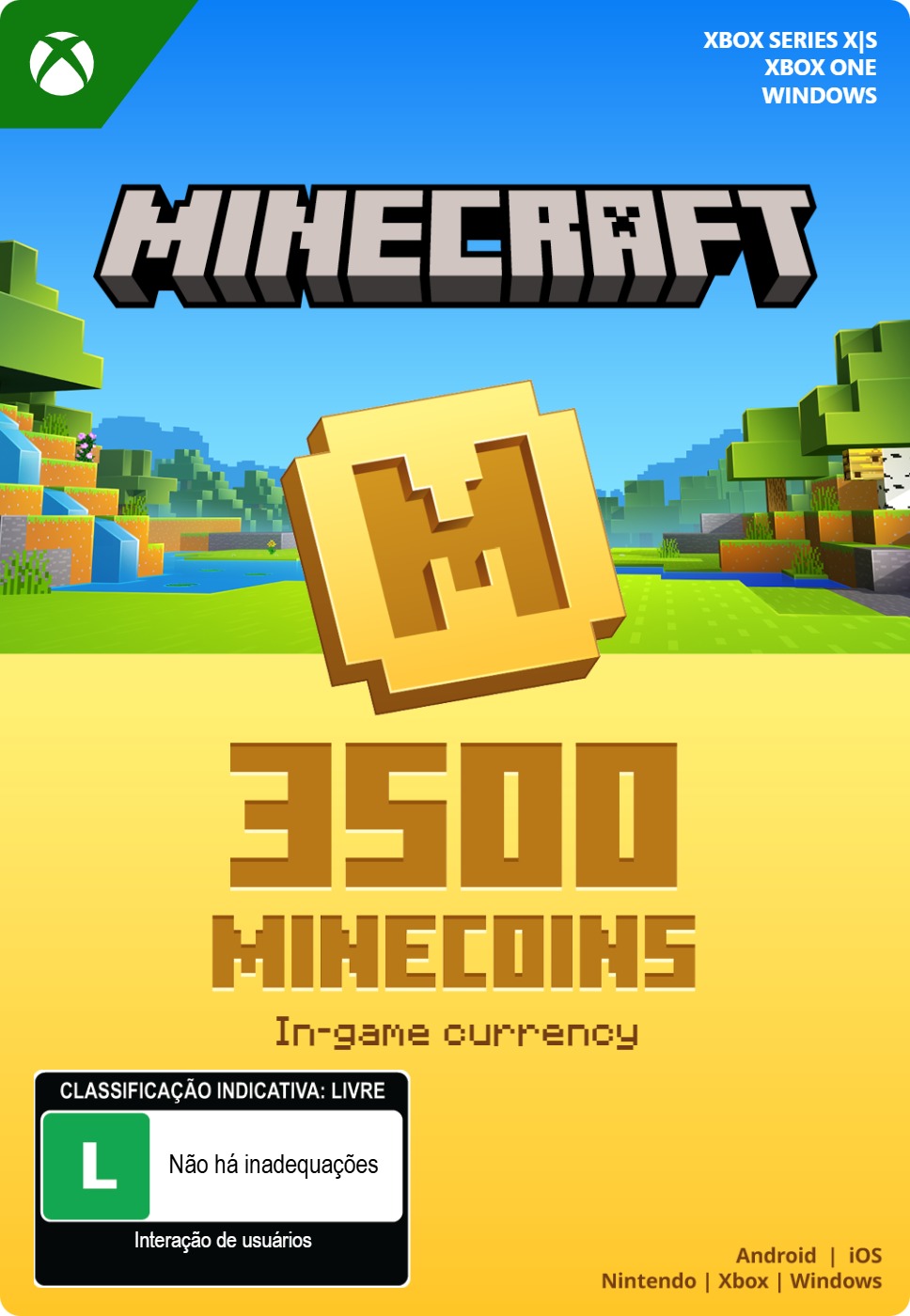Use Minecoins para comprar novos conteúdos emocionantes dos criadores do Minecraft através da loja Minecraft no jogo! Você pode utilizar as Minecoins nos dispositivos Android, iOS, Xbox Series X|S, Xbox One, Nintendo Switch e Windows ‘’COM EXCEÇÃO WINDOWS 10’’. Navegue na loja Minecraft para descobrir conteúdo completamente novo toda semana, incluindo pacotes de skin, pacotes de mash-up, minijogos e mapas de aventura para explorar. Uma vez trocadas e vinculadas com a sua conta da Microsoft, você poderá acessar as suas Minecoins e compras por meio de todos os dispositivos compatíveis que executem o Minecraft. As Minecoins são um presente perfeito para os jogadores do Minecraft!
